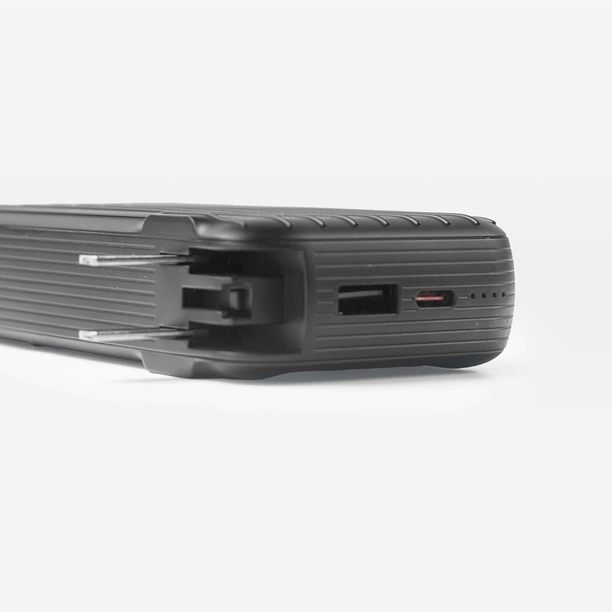 Cuenta con cables fijos Lightning y USB-C integrados que evitan transportar cables sueltos.