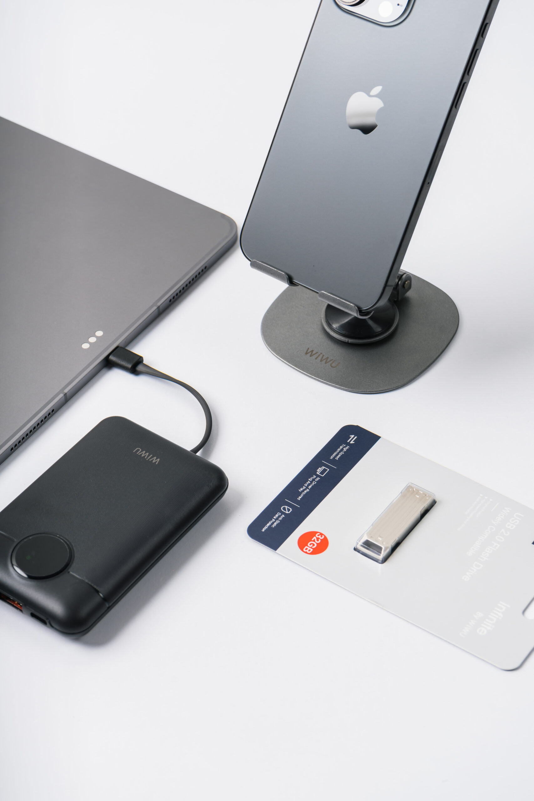 Tres accesorios pensados para complementar movilidad, productividad y orden, reunidos en un solo set funcional, compacto y alineado con un estilo moderno y minimalista.