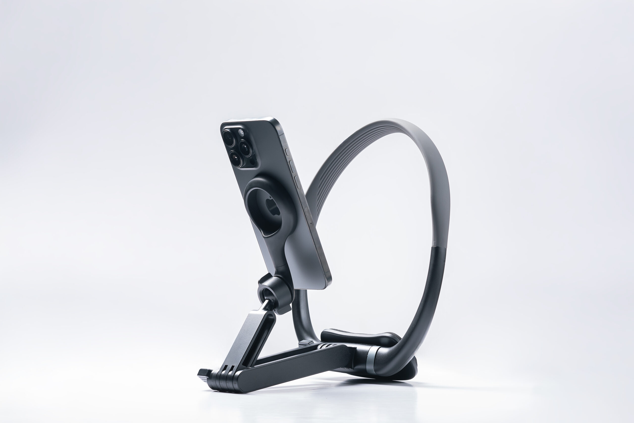Un soporte de cuello diseñado para usar tu smartphone con total libertad, ofreciendo sujeción magnética segura y comodidad continua para grabar, ver contenido o seguir indicaciones sin usar las manos.